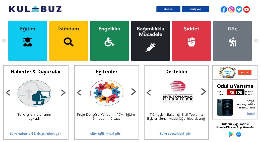 kulabuz; dezavantajlı gruplara yönelik yenilikçi projelerin hayata geçirilmesinde sosyal girişimcilere kılavuzluk görevi üstlenecek bir web sitesidir